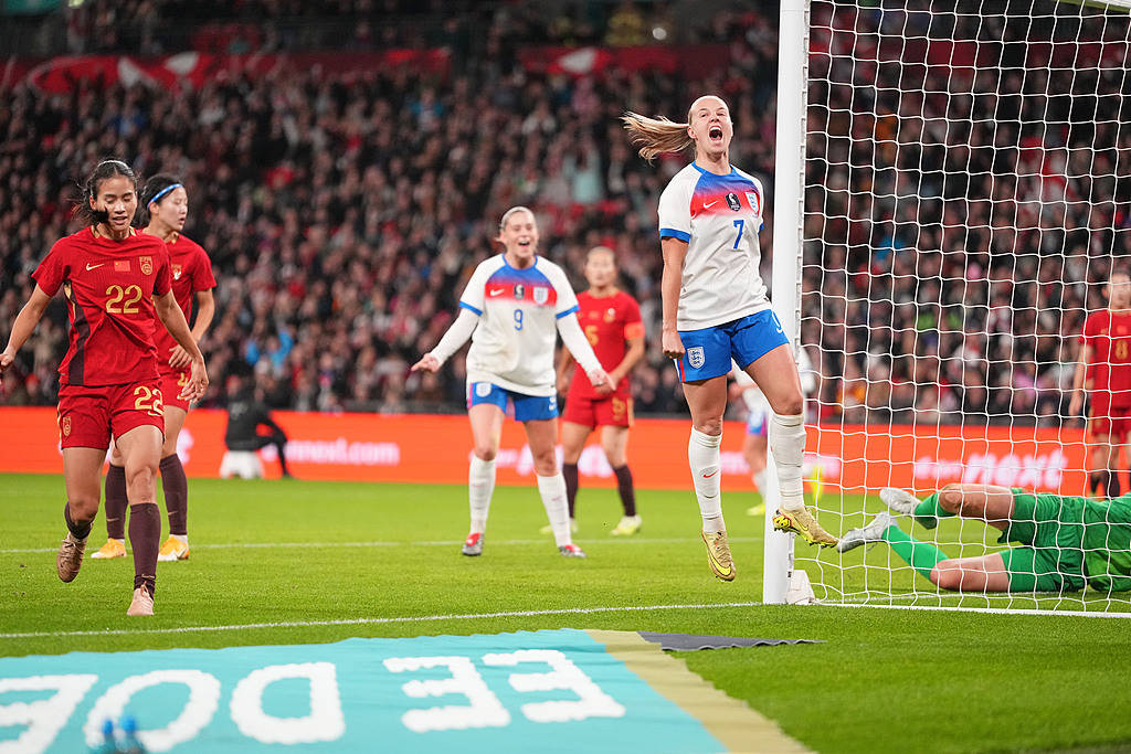 第23分钟,李梦雯护球被抢断,英格兰再下一城;